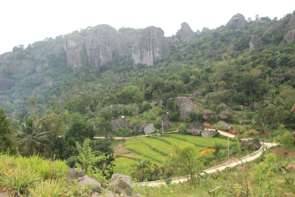 ジョグジャカルタ市内から車で約1時間半、グヌン・キドゥル県に位置するプルバ山(グヌン・プルバ・ングランガン)は、約6,000万年前に形成されたとされる古代火山の名残を感じられる場所です。